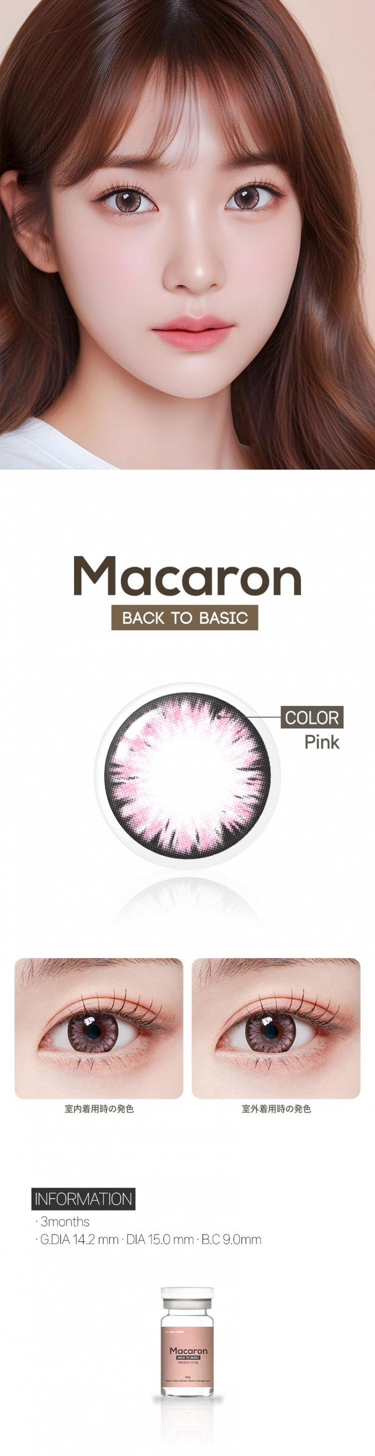 カラコン通販ザピエルTOP > 度なし | デカ目(Big size) > ピンク (桃) 度なし > 【3ヶ月】バックトゥベーシックマカロンピンク Back to Basic Macaron Pink(1瓶1枚入)
