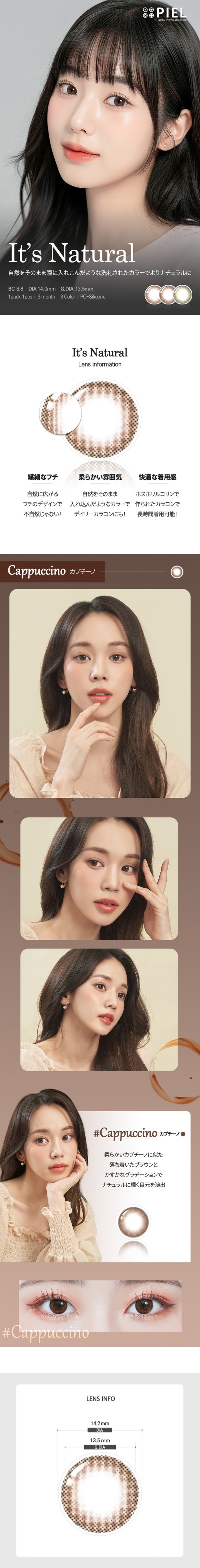 カラコン通販ザピエルTOP > 度なし | 学校用(School) > ブラウン (茶) 度なし > 【3ヶ月】イッツナチュラル カプチーノ It's Natural CAPPUCCINO(1箱1枚入)