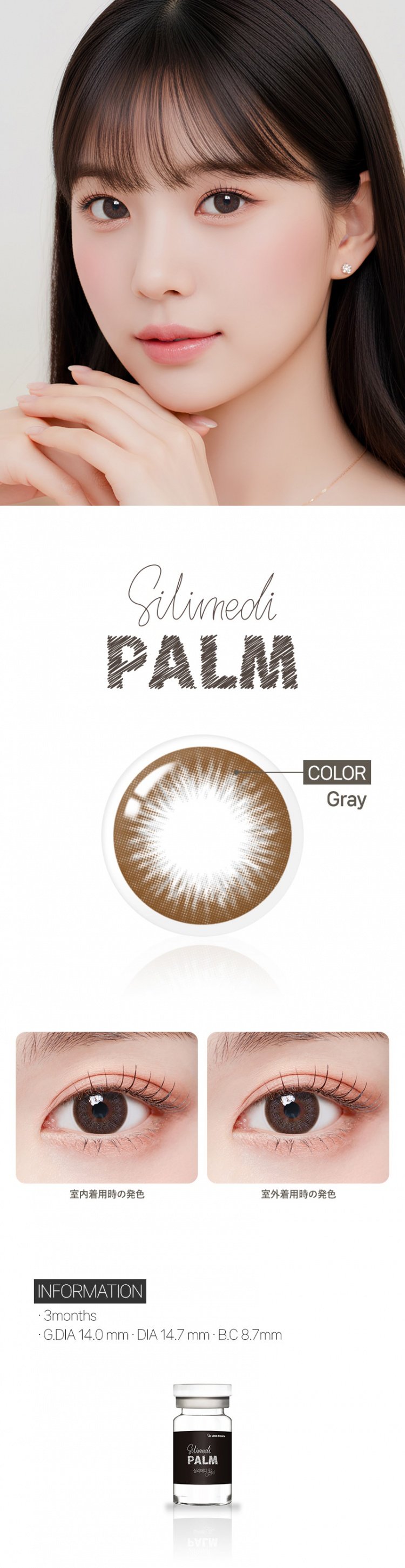 カラコン通販ザピエルTOP > 度なし | デカ目(Big size) > グレー (灰) 度なし > 【3ヶ月】シリメディ―パーム グレー Silimedi Palm Gray(1瓶1枚入)