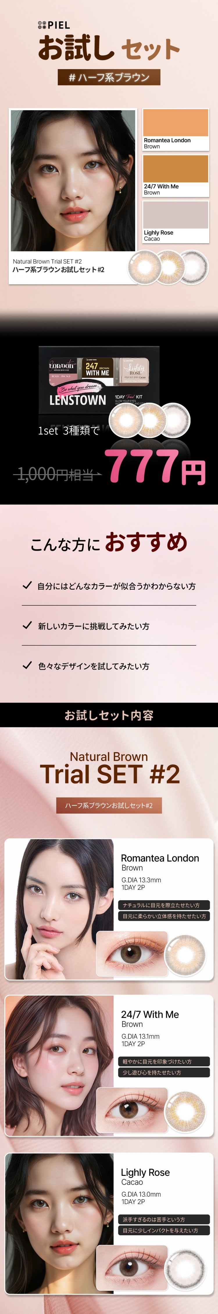 | 商品名 | 【ワンデー】ハーフ系ブラウンお試しセット#2 Half Brown Trial SET #2(1箱6枚入) |