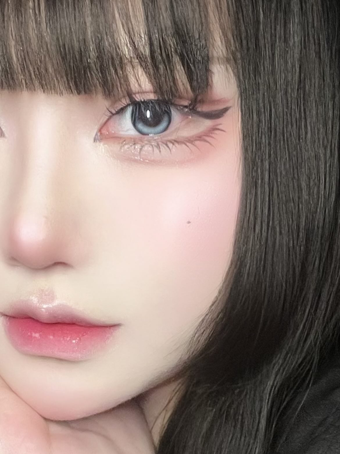 丸一日つけててもズレや乾燥を感じにくく、ハイライトカラーの発色がちゅるんと綺麗で写真映えもするのでおすすめカラコンです!引きで見ても水光部分のデザインが伝わるのが嬉しいポイントです☺️