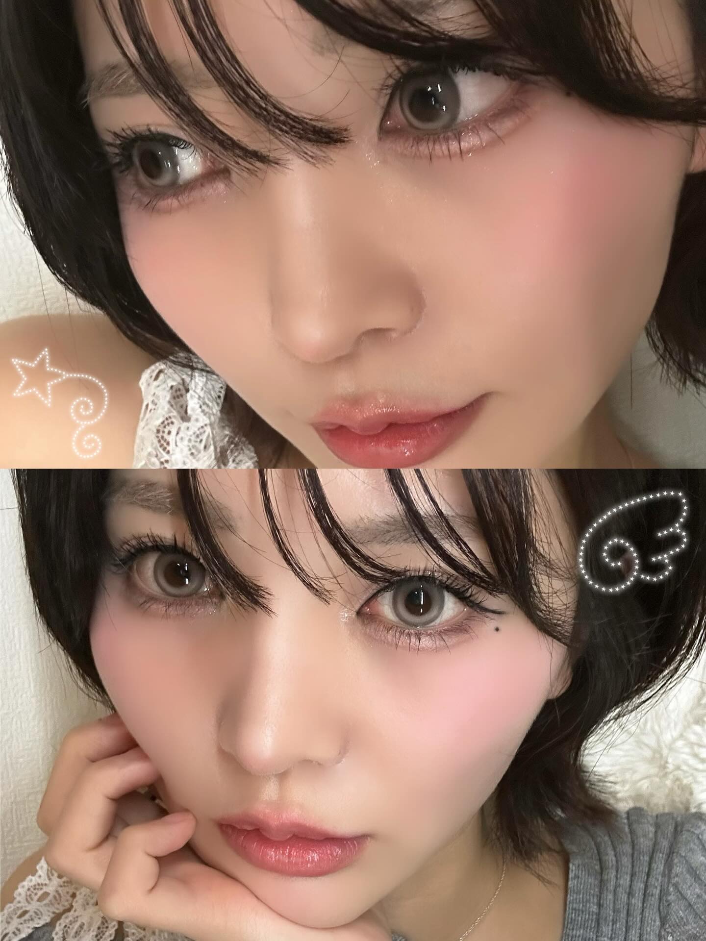 新作のハイライト部分固定ワンデーカラコン!私はグレーを試してみました????他にもブルーとブラウンがあります????