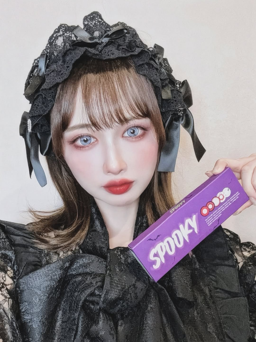 新登場ハロウィン限定コレクションのアイチュームスプーキー!白ベースに黒のステッチ模様が入ったホラー感あるデザインだけどつけてみると私の顔にとーっても馴染んだ????着色直径13.3だけどそれより大きく...